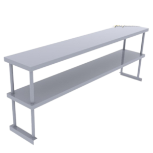 Mặt bàn rộng rãi của tầng trên cùng thường được dùng làm nơi chuẩn bị nguyên liệu như sơ chế rau củ, thịt cá hoặc thực hiện các thao tác chế biến nhanh. Bề mặt inox dễ lau chùi và không bám mùi, giúp đảm bảo vệ sinh an toàn thực phẩm.