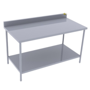 Bàn inox có kiểu dáng gọn gàng, hiện đại, phù hợp với nhiều không gian bếp, giúp tạo cảm giác chuyên nghiệp và sạch sẽ.