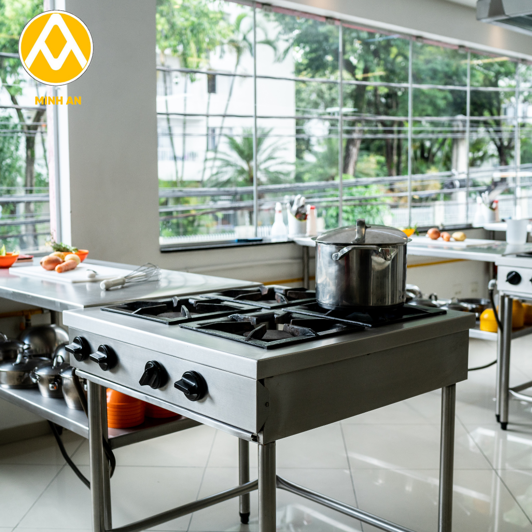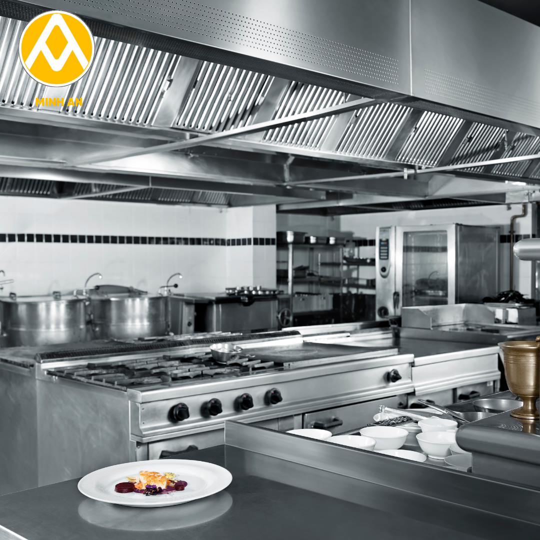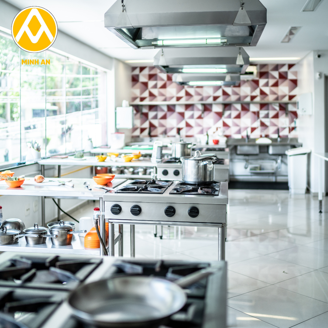 Minh An tự hào là đơn vị cung cấp giải pháp trọn gói cho mọi mô hình nhà hàng, từ quán ăn gia đình đến các khách sạn 5 sao, từ bếp ăn tập thể trường học đến nhà máy chế biến thực phẩm. Chúng tôi cung cấp một hệ sinh thái hoàn chỉnh: từ hệ thống bàn, kệ, tủ, chậu rửa inox cho đến việc tư vấn tích hợp với các thiết bị bếp nấu, thiết bị lạnh, và hệ thống thông gió, đảm bảo sự đồng bộ, hài hòa và vận hành trơn tru.